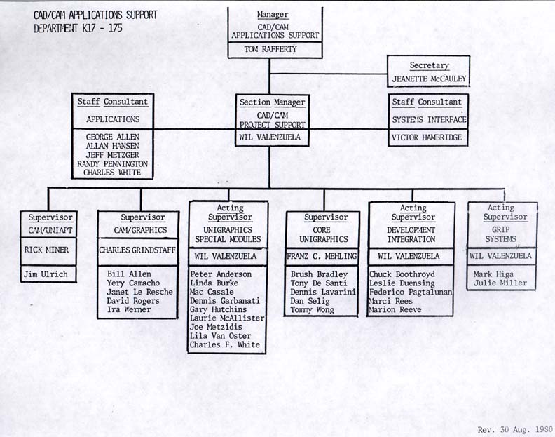 Unigraphics development organization chart (circa 1979).