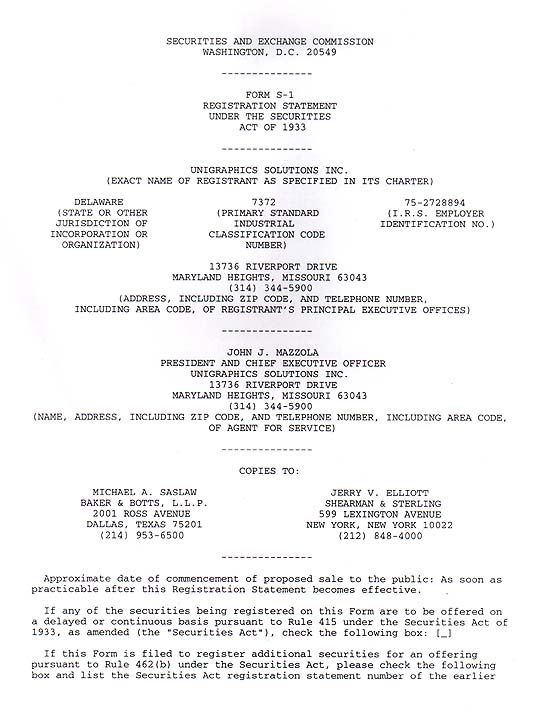 SEC Form S-1 (Registration for Public Offering) for Unigraphics Solutions, Inc.![]()