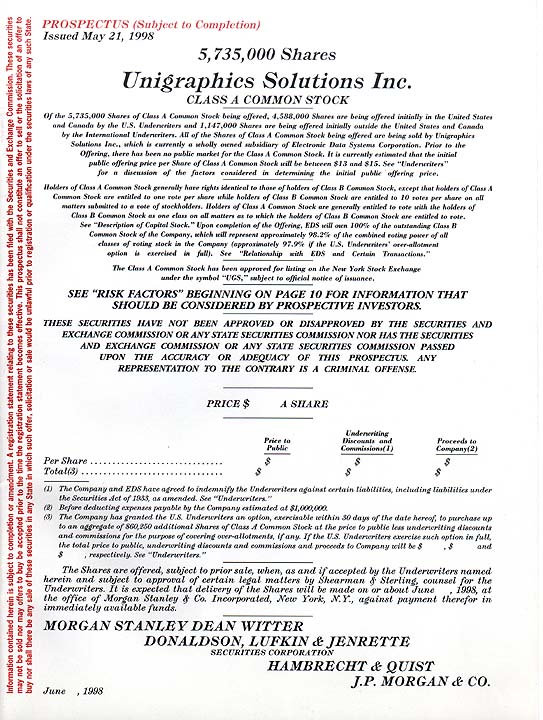 Unigraphics Solutions Inc. IPO Prospectus![]()