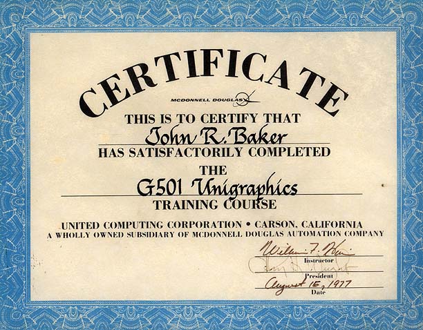 United Computing UG Training Certificate (circa 1977)![]()