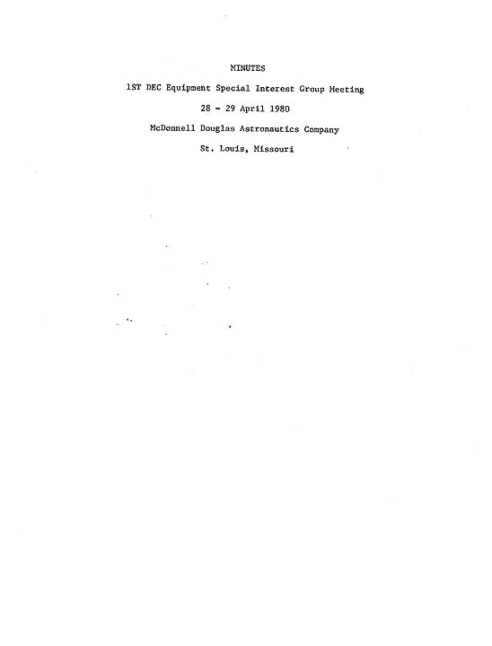Minutes and agenda from the 1st DEC Special Interest Group meeting, April, 1980, hosted by McDonnell Douglas Astronautics Company, St. Louis, MO.