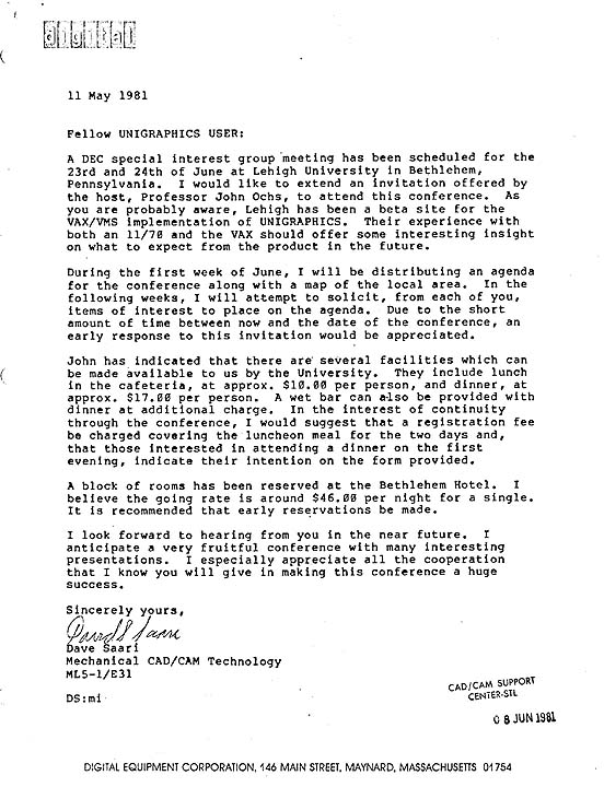Invitation letter and agenda for the 3rd DEC Special Interest Group meeting, June, 1981, hosted by Lehigh University, Bethlehem, PA.