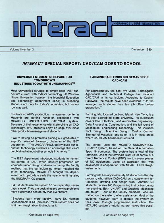 Interact, Volume 1 - Number 3, December, 1980 - Page 1