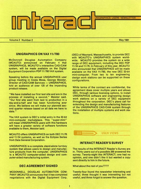 Interact, Volume 2 - Number 2, May, 1981 - Page 1
