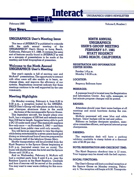 This issue was provided to the attendees of the 9th Annual Unigraphics Users Meeting held in Long Beach, CA. The issue included the agenda for the sessions as well as the biographies of the presenters.