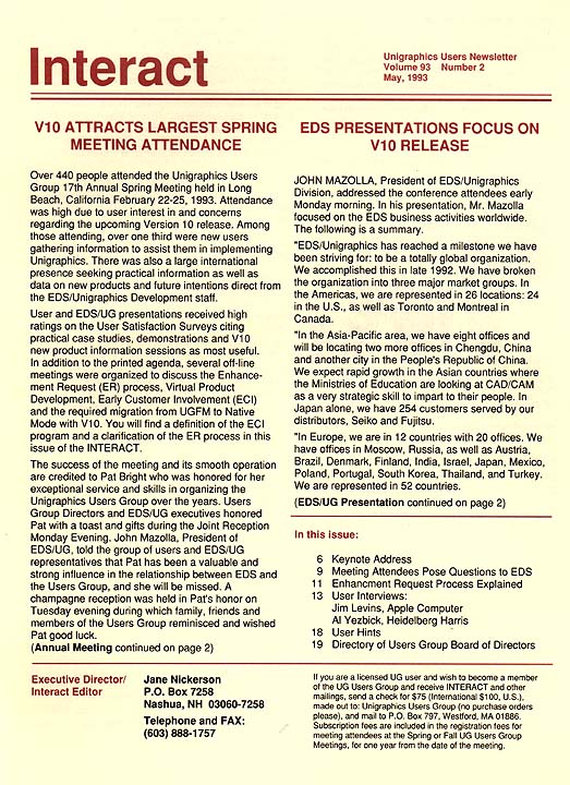 The issue included a review of the Spring Meeting and included material presented by UG/EDS covering the functionality of V10.0. This issue also included interviews with several users and also included a list of User Group officers.