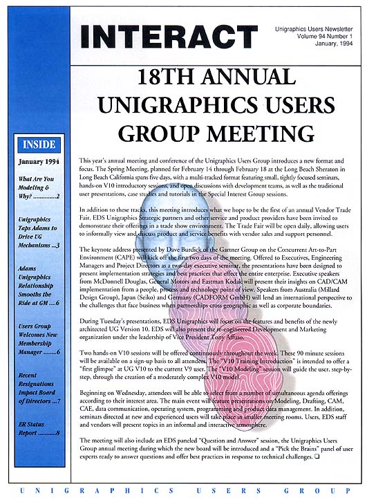 This issue of the "Interact" introduced a new layout and revamped style. The issue included a preview of the upcoming Spring Users Meeting. This issue also included a status report for the ER's submitted during the Fall Workshop '93.