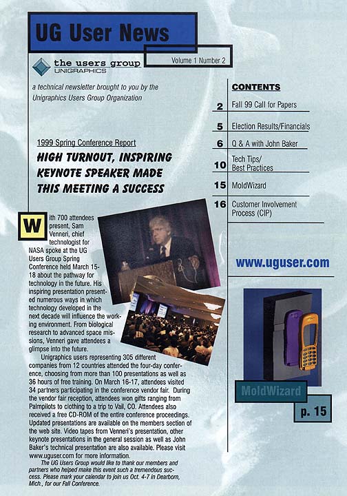 This issue had a review of the recent Spring Users Group Meeting and included Q&A column and the user tips section. There was also an article on the new Mold Wizard product.
