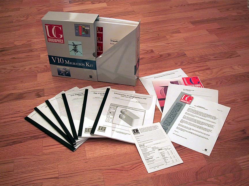 This Migration Kit consisted of several manuals and head start guides as well information on training schedules and a response card where more information could be requested. Note that this kit was sent to all customers who were upgrading from V9 to V10. The first kits were sent with the V10.3 shipment as that was the first release of Unigraphics V10 that was sent to all customers.