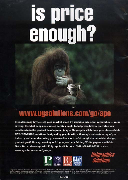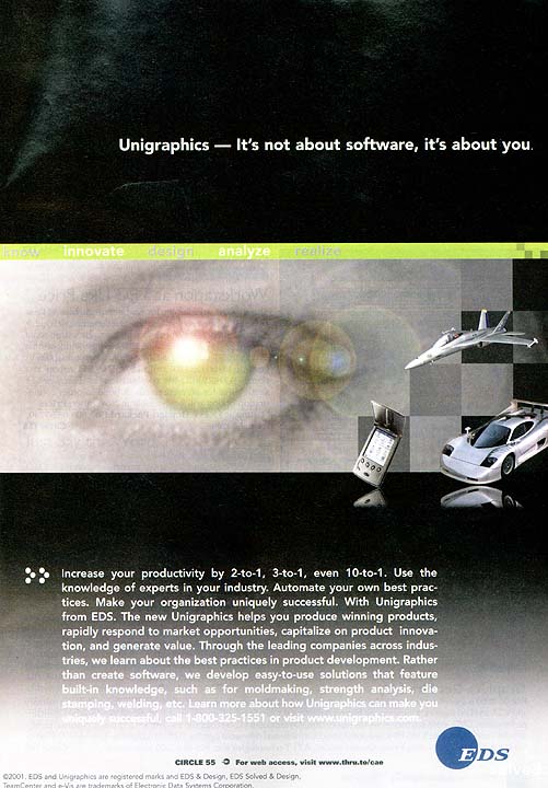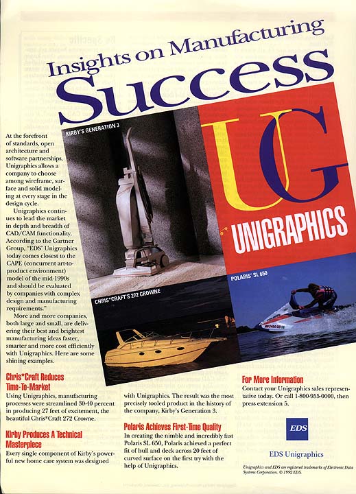 In this section we are presenting examples of Unigraphics advertisements as well as a few magazine covers that featured Unigraphics images. Note that this collection does not represent all of the advertisements placed by the Unigraphics organization over the years, however it is a representative sample.