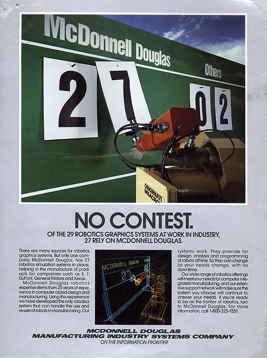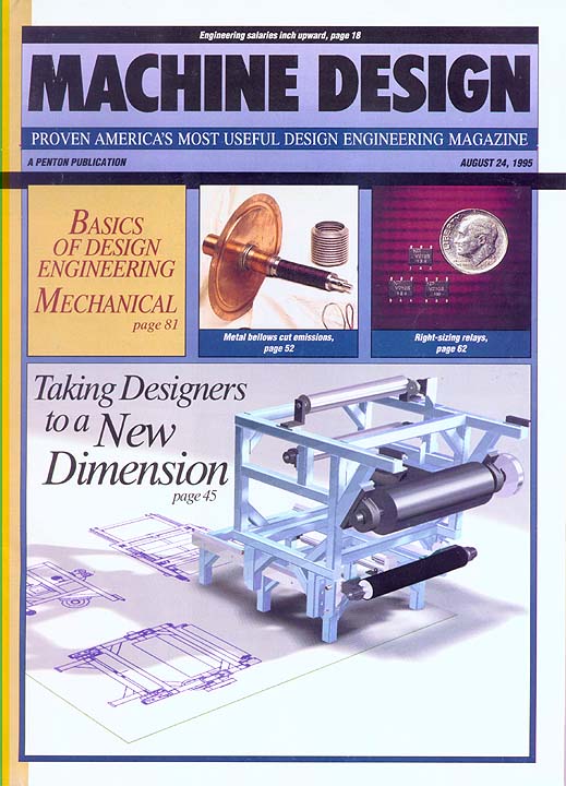 The cover story was about mechanical simulation using kinematics analysis and graphical simulation. The cover picture is from a dynamic simulation of a typewriter print ball mechanism using Unigraphics running on the D-2300. Machine Design, February, 1981