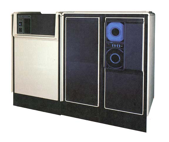Data General Eclipse "S" series CPU (circa 1976-83)The Data General Eclipse "S" series CPU was the next family of systems on which Unigraphics was available. There were several models sold including the S200, S230 and S250 (shown above) and anywhere from 3 to 6 workstations were supported depending on the model and the available memory (128 KB to 512 KB). Main storage was a CDC style removable disk drive unit (shown above to the right of the CPU) capable of storing either 96 MB in single density or 190 MB in double density mode. Note that a later model, the S140, was the CPU at the heart of the A-100 stand-alone workstation.