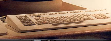 New D2300 integrated PFK-ASCII keyboard (circa 1984)This photo shows the all new custom integrated PFK - ASCII keyboard that was included with the D2300 workstation. The normal PFK buttons were laid out in a totally new arrangement with the 14 numbered option keys on the left end and the special function keys were distributed along the top above the normal keyboard. These keys had small LED's in each key to indicate which buttons were active, similar to the back-lighted keys on the older PFK's.