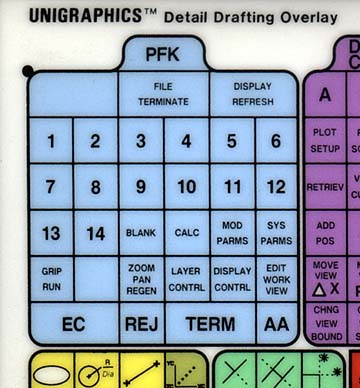 There was even a small section of the Unigraphics Detail Drafting (UGDD) tablet interface overlay that included a PFK layout for those users who were running UGDD on a system with no add-on PFK.