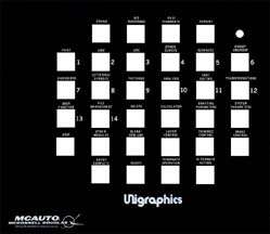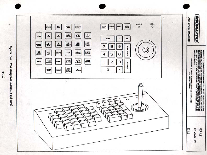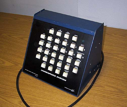 This shows the original Unigraphics 32 button PFK. Note that this early version used paper overlays and was soon replaced by the larger upright version seen in the next panel.