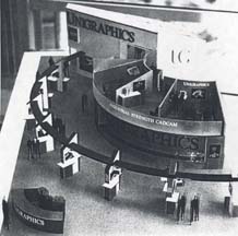 EDS Unigraphics provides a sneak preview of Unigraphics V10.0 at the 1992 Autofact Show in Detroit, MI. This was the first public demonstration of Unigraphics V10.0 anywhere. Extra effort was made as this was the first major trade show that Unigraphics exhibited at since the acquisition by EDS. As shown in the scale model on the right, this was a very elaborate booth with several private demo rooms and a reception area with private meeting areas on a separate upper level. The booth occupied over 5,000 square feet (not counting the second level) and included a theater that seated over 100 people at a time where presentations and demos were given on a regular schedule throughout the duration of the 3 day show. A total of 26 workstations were installed in the booth and virtually all products offered by EDS Unigraphics were being shown somewhere at either one of the many public demo stands or in one of the 4 private demo rooms.Version 9.1 of Unigraphics II is released. Due to the long duration of the roll out of V10.0, Version 9.1 was supported for several years with many patches being released over time to keep the product as current as possible.February, 1993:The 17th Annual Unigraphics Users Group Meeting was held at the Sheraton Hotel in Long Beach, CA. Of course the main topic at this meeting was the introduction of Unigraphics V10.0. There were many demos and presentations covering all of the major aspects of the new product. Special attention was given to introducing the new user interface (which no longer supported the PFK), the completely new assembly modeling architecture and the updated Drafting module. However, the most time was spent introducing the concept that the primary method of geometric modeling was now going to be feature-based, parameter driven, solid modeling. As would be expected, a lot of the Q&A session was dedicated to issues involving the transition from V9 to V10.March, 1993:Field testing of Unigraphics V10.0 started on HP Unix only.September, 1993:The Fall Workshop '93 was held in Cambridge, MA. This meeting provided more opportunities to review the functionality of V10.0. Also introduced at this meeting was the new ECI (Early Customer Involvement) process which allowed a select number of customers to review current V10.0 functionality and proposed future functionality. Since there were so many changes in the area of the User Interface much of the effort focused on that area.October, 1993:Unigraphics V10.1 is released. Again this was treated more as a sort of advanced "beta" version with deliveries only to customers who requested it.February, 1994:The 18th Annual Unigraphics Users Group Meeting was held at the Sheraton Hotel in Long Beach, CA. Again the primary topic of the meeting was Unigraphics V10. By this time there were several customers who had already started to adopt V10 and therefore were able to report their progress. While these customers readily admitted that they were not necessarily using V10 in full production, the consensus was that V10 possessed real potential and that it was a step in the right direction.March, 1994:The next release of Unigraphics, V10.2, is shipped to those customers who had already received V10.1 or who had made a specific request for V10.2.June, 1994:September, 1994:![]()